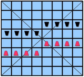 8x8のボードを使います。ボードには、対角線に線(シッケチョウ)が引かれています。