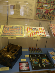 伝統ゲームだけでなく、現代のストラテジーゲームなどの展示もありました。軍人将棋は、昭和初期のものから館長らが遊んだ昭和40年代のものまで、懐かしいコレクションがそろっていました。戦時中のものは素材や作りに戦争の影が見えるなど、同じゲームでも時代を映しています。