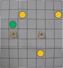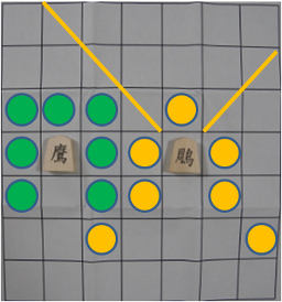 7x7の盤に32枚の駒を上記写真のように配置します。 1, 2段目が陣地です。