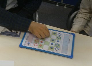 山本さん考案の大ヒットゲームYonmoque、参加者の約半数が「これ持っています。」という人気ぶり。他のゲームにない、独特な4目並べのルールの面白さは無敵!?です。