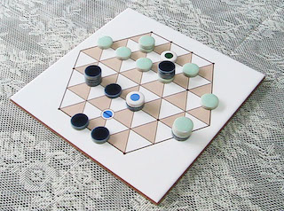 館長作のAmoebaは、本格的思考ゲーム。単純なルールに、アブストラクトゲームらしい個性的なルールが潜ませてあるので中毒性があります。