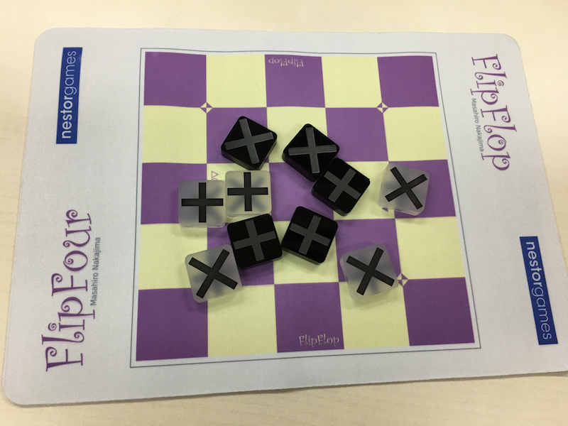FlipFour is an abstract strategy game for 2 players invented by Masahiro Nakajima, the Curator of The Museum of Abstract Strategy Games, in 2016.