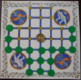 1300年ごろの、アイスランドの5大サーガの1つ"Grettis Saga"の中にも登場します。また、英国のEdward IVの家計簿に、Fox and Geese を購入した記録があるそうです。 ビクトリア女王とアルバート王子も、このゲームの愛好家だったことが知られています。