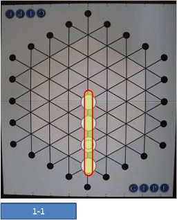 1つの始点の上に置き、そこから線に沿って1つ先に隣接する交点まで駒を進めます。