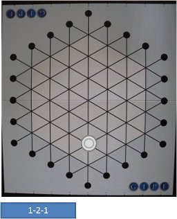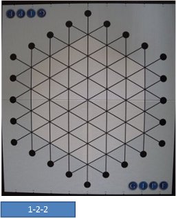 盤上のプレイ・エリアには、37個の交点があります。駒は、必ず交点上に置き、線に沿って移動します。