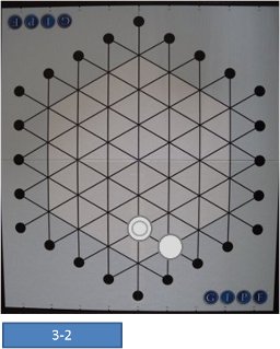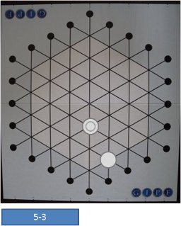 Fig.5-3は、白が自分のGIPF駒は残して4つの自駒リザーブに戻し、GIPF駒も捕獲して全部で3つの黒駒を捕獲した図です。