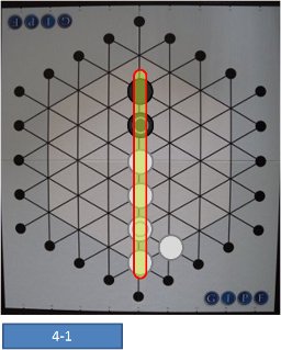 また、4個かそれ以上のGIPF駒ばかりで同色の1列ができあがることがあります。 この場合は、そのうちいくつかのGIPF駒を取ることもできますし、全て盤上に残したままにすることもできます。