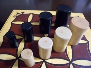 Gobbletは、駒がユニークな構造のゲームで、四種類のサイズの駒は、 ロシアのマトリョーシカ人形のように、 それぞれ一つ大きなサイズの駒の中にすっぽりと入ってしまいます。