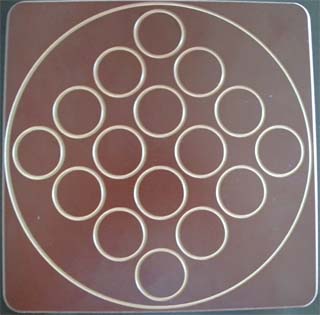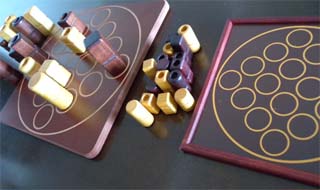 ゲームの開始時、(上の写真のように)すべての駒をボードの外に双方のプレーヤーからよく見えるところに置きます。