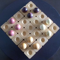 各プレイヤーは、自分の色を決めます。標準ルールでは、それぞれの色の五個の球を持ってゲームをはじめます。