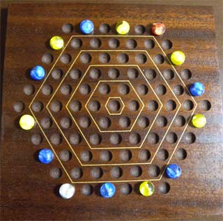 19世紀にUKで流行した二人用競争ゲームです。 六角形のボードで遊ぶ Queen's Guard は、Agon, Royal Guardsとも呼ばれ、18世紀の終わりにフランスで発祥したと考えられています。