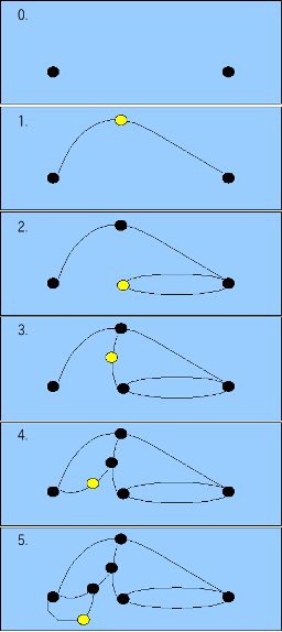 紙の上に点をいくつか打って置きます。点の数は、通常7個ですが、二つだけでも十分に複雑なゲームになります。