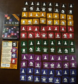 製品には、各プレーヤー用にPawn 8個, Knight 2個, Bishop 2個, Rook 2個, Queen 1個, King 1個のタイルが6色 6セット入っています。