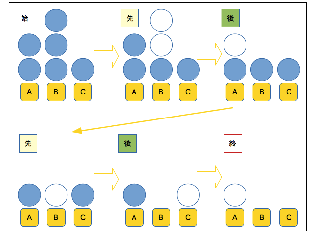 自分の手番で安定状態を作れれば、勝ちのパターンに入っているわけです。